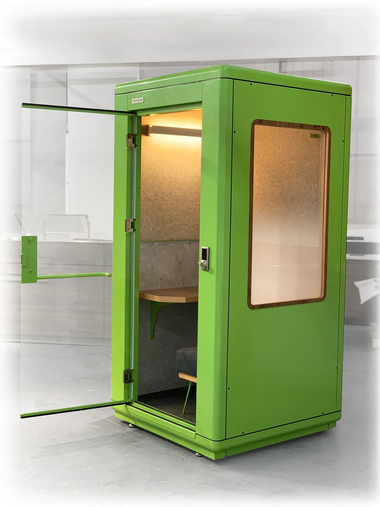 It is tranQube’s special design to materialize the idea of personal space. Let’s start with your open office layout and welcome a whole new work style. A timer-controlled ventilation provides fresh air and comfy work environment. Pods are easy to assemble and relocate when necessary.